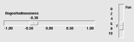 Каждая шкала отображает ползунок (slider), который пользователь может перетаскивать вдоль желоба (trough), чтобы изменить значение. На рисунке первый ползунок сейчас находится на отметке -0,38, а второй - на отметке 7.