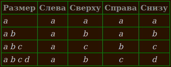 Используйте этот аргумент, чтобы разместить дополнительное пространство вокруг содержимого виджета. Вы можете указать либо одно значение размера, либо последовательность из двух, трёх или четырех таких значений, интерпретируемых в соответствии с этой таблицей: ![]() |